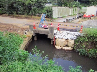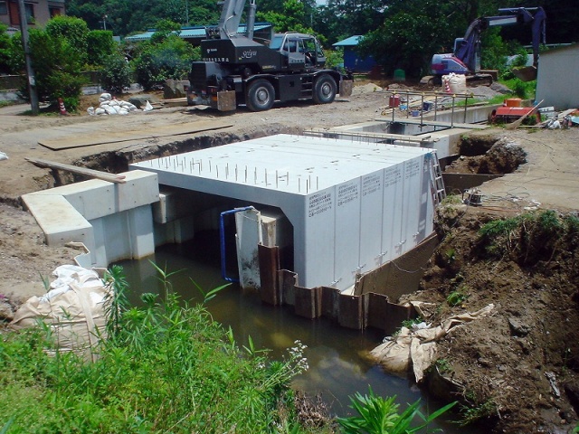 道路拡幅に伴う橋梁架け替え工事 組立水路にかぶせる