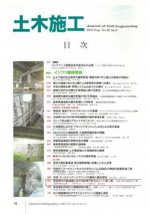 特集記事「インフラ維持更新」の中で、昨年度、広島市内で採用頂きました「緊急用河川敷道路」での実績について工事内容を記載しています。