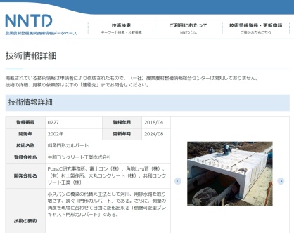 2024年09月17日(火) 新着情報 農業農村整備民間技術情報データベースを更新 農業農村整備民間技術情報データベースがARICからNNTDと変更になりましたので、データベースを更新しました。 NNTD(農業農村整備民間技術情報データベース)