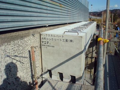 2010年01月23日(土) 新着情報 施工実績にNEXCO東日本、斜角4分割ボックスカルバートを追加 施工実績紹介ページにNEXCO東日本発注の斜角4分割ボックスカルバートを追加致しました。 発注者:東日本高速道路株式会社東北支社仙台管理事務所 元請者:日建工業株式会社 工事名:東北自動車道仙台南地区路肩拡幅工事 製品名:斜角4分割ボックスカルバート 6000×4150 斜角度80度 上下連結:KTジョイント D25 延 長:L=1.00m