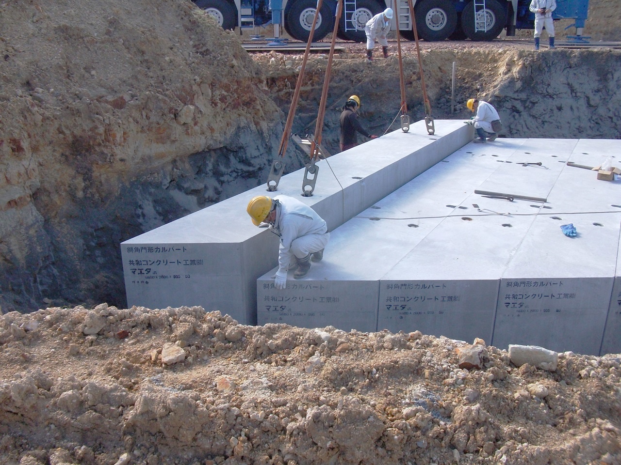 2017年10月26日 山形県西川町役場 施工実績 東北地区 橋梁新設工事 構造物保護工 発注者:山形県西川町役場 工事名:町道沢口向中岫線道路改良工事 施工者:株式会社 佐藤建設 製品名:斜角門形カルバート 規 格:[B]6,600×[H]2,000 斜角度:60.00度 延 長:L=16.00m 工事看板 使用機材400t吊 設置前状況 設置状況 基礎高調整鉄板 製品搬入状況 吊り込み状況 1個目設置状況 2個目設置状況 3個目設置状況 4個目設置状況 4個目設置状況 5個目設置状況 6個目設置状況 7個目設置状況 7個目設置状況 8個目設置状況 製品吊上げ状況 9個目設置状況 10個目設置状況 側壁部引寄せ 頂版部引寄せ 11個目設置状況 クリアランス確認 12個目設置状況 13個まで設置 14個目設置状況 15個目設置状況 最終(16)設置 側壁部引寄せ 設置完了 基礎端部