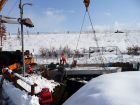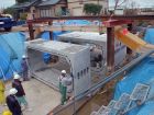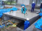 ※下流側(写真奥側)4函は、光ファイバーケーブルが障害になり、横引工法で設置