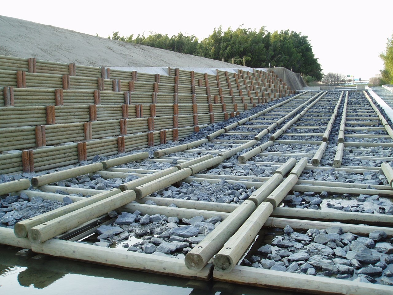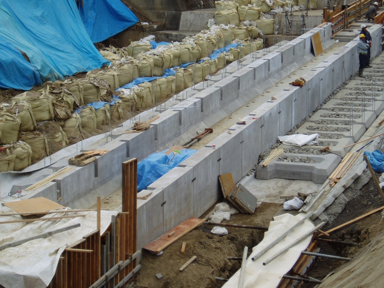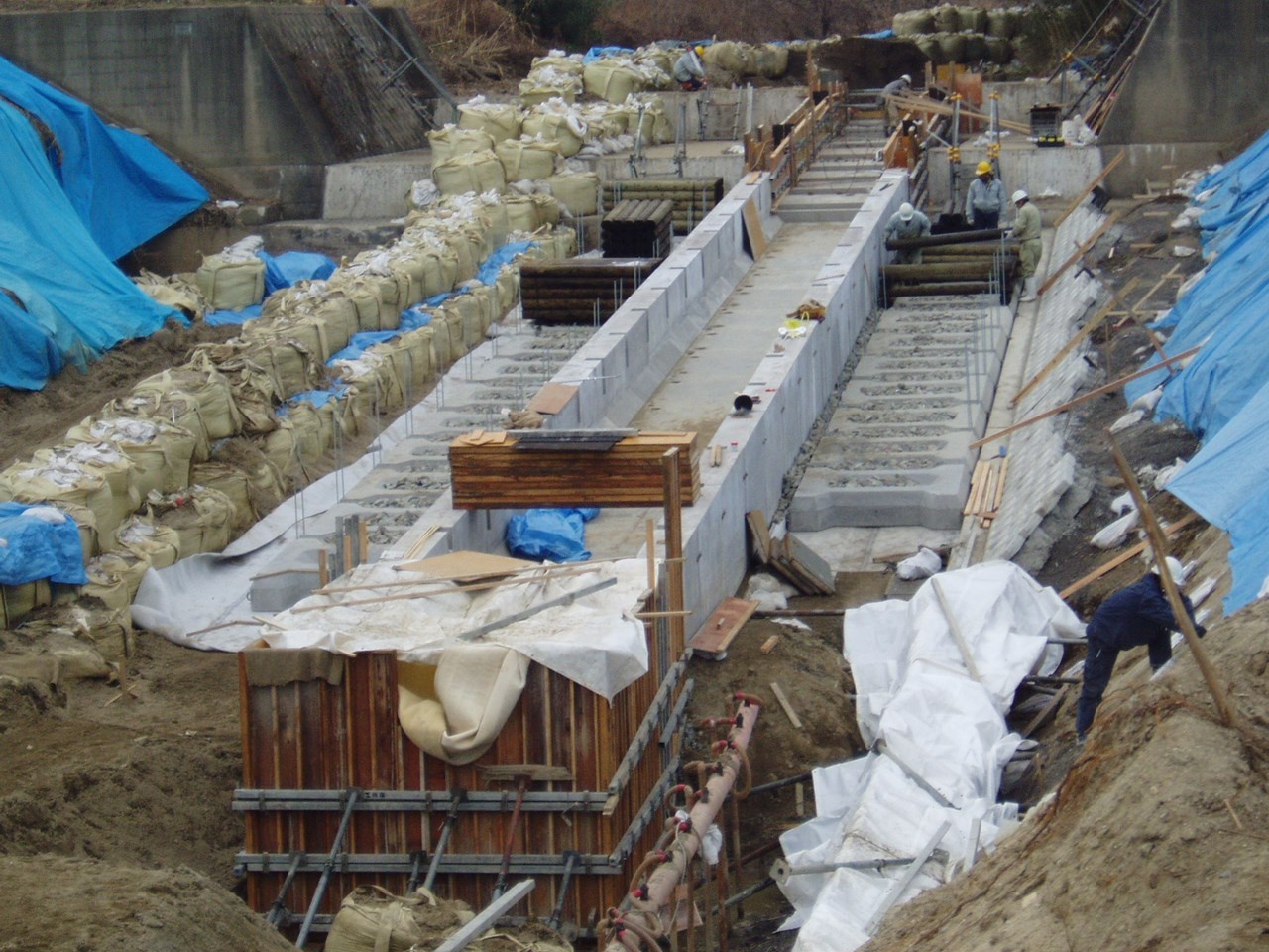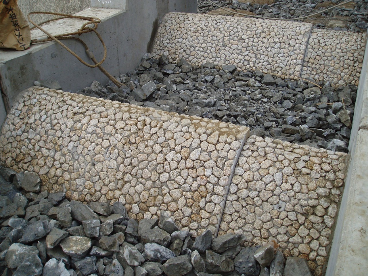 2006年02月01日 国土交通省近畿地方整備局淀川工事事務所:魚道 施工実績 関西地区 施工実績 関西地区 全体工事完了 発注者:国土交通省近畿地方整備局淀川河川事務所 工事名:小泉川落差工災害復旧 製品名:大型水路(魚道工) B2000×H915×L2000 延 長:L=32.0m 施工前状況 製品玉がけ状況 基礎状況 設置状況 水路据付完了 床固めブロック 魚道落差部 製品名記載 完成 ※魚道について詳細はここをクリック!
